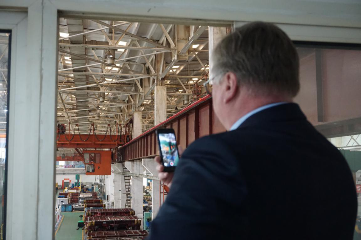 谢尔盖先生首先查看了自动化轮辋生产线的生产进度,考察了汽车模具加工制造能力,又参观了汽车零部件生产车间,对小鸭精工的实力表示充分肯定,在参观路上谢尔盖先生连连感叹,不断对精工的技术能力竖起大拇指,不时停下脚步,拿出手机要合影留念,并强烈表示希望与精工深化合作,进一步拓宽合作范围。