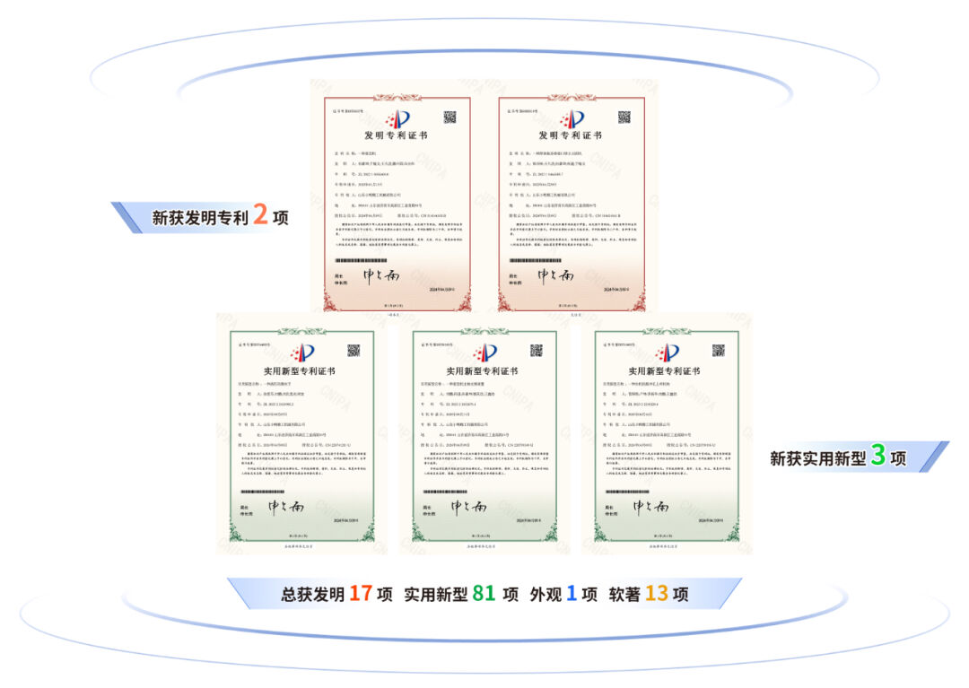 实用新型:《ZL 2023 2 2452676.1 一种滚型机主轴支撑装置》、《ZL 2023 2 2421985.2一种液压轮辋夹手 》、《ZL 2023 2 2210220.4 一种农机轮毂冲孔上料机构》