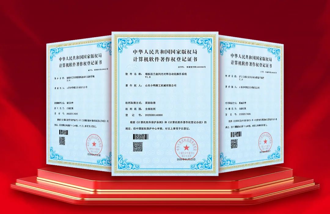 近日,小鸭精工接连收获一项发明专利、一项实用新型、三项软著,分别是《一种汽车零件生产线》、《接触式端径跳检测设备》、《扩口自动化及不合格分拣操作系统》、《端板法兰盘闪光对焊自动化操作系统》、《端板法兰盘焊缝处理自动化操作系统》。
